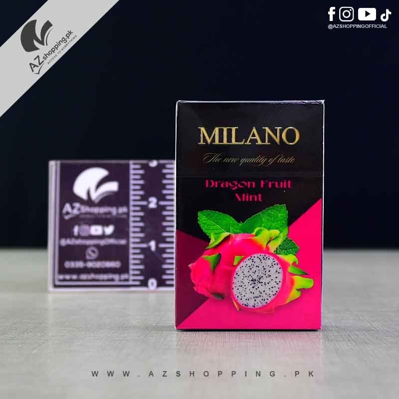 “Milano Premium Hookah Tobacco Dragon Fruit Mint Flavour (50g) – a unique exotic blend of sweet dragon fruit with a refreshing mint twist. Crafted with high-quality ingredients, this Milano flavor delivers smooth, long-lasting sessions, thick smoke, and vibrant taste. Perfect for hookah lovers who enjoy luxury, freshness, and an unforgettable shisha experience.”